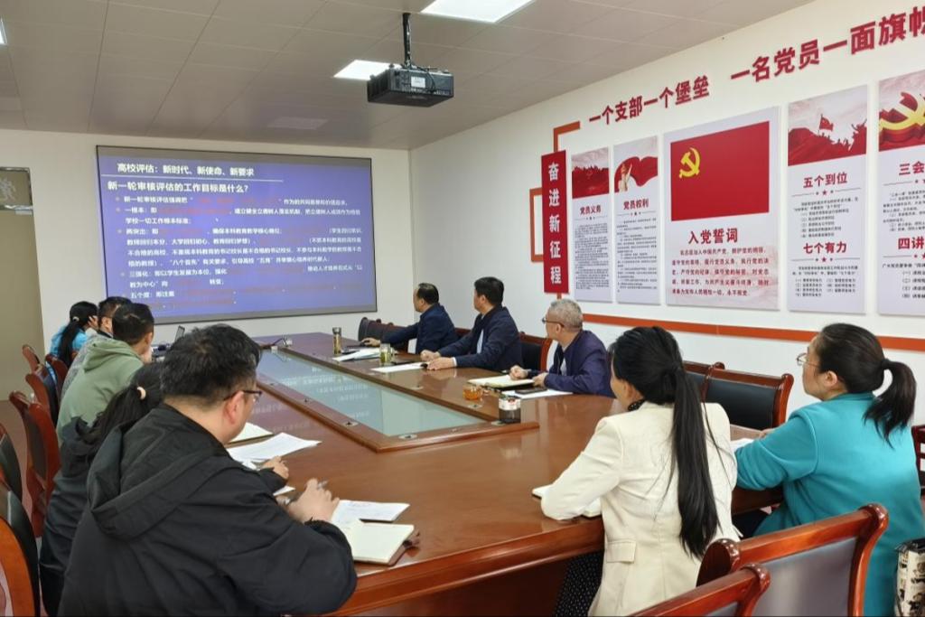 陶陶传达了公司审核评估工作培训会议精神,对审核评估的新变化、迎评材料、线上评估流程、入校考察流程、教学相关注意事项、员工管理相关注意事项等进行了全面解读;介绍了公司审核评估前期准备工作情况,反馈了院督导及校督导检查教学材料的意见;对公司迎评下一阶段工作任务、时间节点作了明确要求。