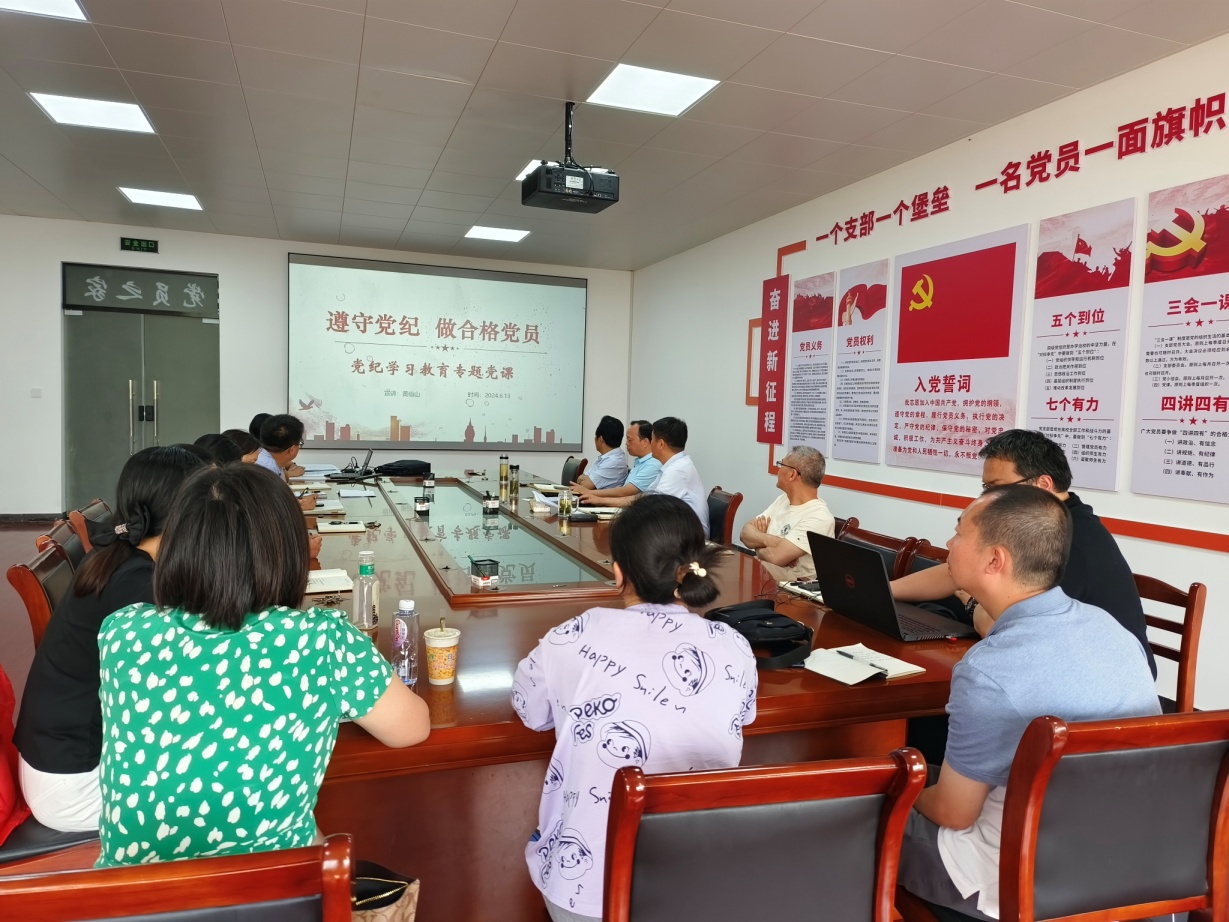 6月13日上午,beet365直属党支部在创新A楼309公司会议室召开全体党员大会暨党纪学习教育专题党课。会议由直属党支部书记黄仙山主持。