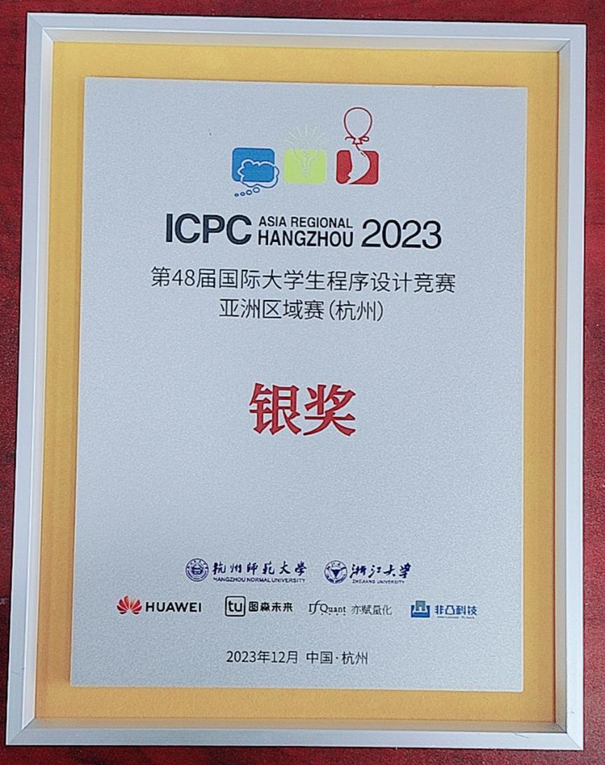 2023年12月9-10日,第48届国际老员工程序设计竞赛亚洲区域赛(杭州)由杭州师范大学和浙江大学联合承办。本次大赛共吸引来自北京大学、清华大学、上海交通大学、南京大学、哈尔滨工业大学、复旦大学、中国科学技术大学、华为科技有限公司、北京图森未来科技有限公司,杭州亦赋量化科技有限公司等全国296所院校及企业的482支参赛队伍,1,446名选手参赛。12月10日为正式比赛,正式赛时长5小时,题目为中英双语,由公司王喜凤、王广正老师指导,戴铃涛、林仁杰、翟智伟组队获得银奖。这是公司在ICPC国际老员工程序设计竞赛亚洲区域赛中继西安站后再获银奖。