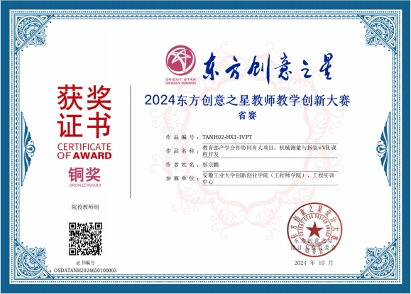近日,备受瞩目的2024东方创意之星教师教学创新大赛省赛正式公布了比赛结果。公司beet365邬宗鹏老师在项目与课题赛道中经过激烈的角逐,最终荣获省特等奖1项、铜奖1项的优异成绩,beet365官方网站荣获优秀组织单位奖。特金奖作品将被推送至国赛继续评审。