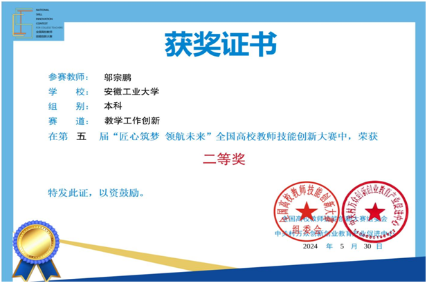 2024年5月30日,备受瞩目的第五届“匠心筑梦 领航未来”全国高校教师技能创新大赛正式公布了比赛结果,公司beet365邬宗鹏老师在教学工作创新赛道中经过激烈的初赛和复赛角逐,最终荣获全国二等奖。