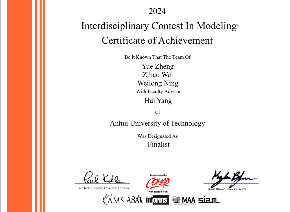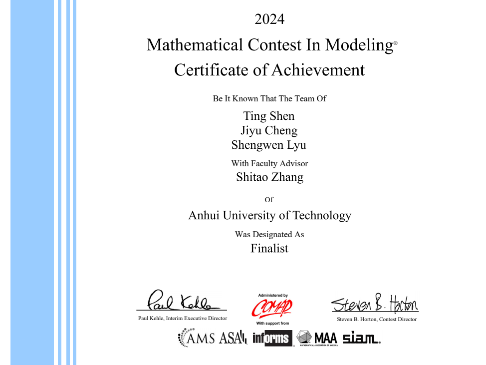 近日,2024年国际老员工数学建模竞赛(Mathematical Contest in Modeling / Interdisciplinary Contest in Modeling,MCM/ICM)结果揭晓,公司参赛队伍共获得特等奖提名奖(Finalist)3项,国际二等奖(Honorable Mention)8项,是公司在此项赛事上自组织以来取得的最好成绩。